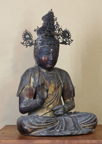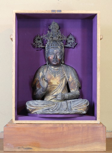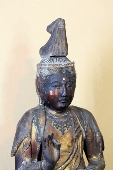 右手指先(中指、人差し指)1~2cmは欠損、その他はすべて製作当時(鎌倉時代)のままです。